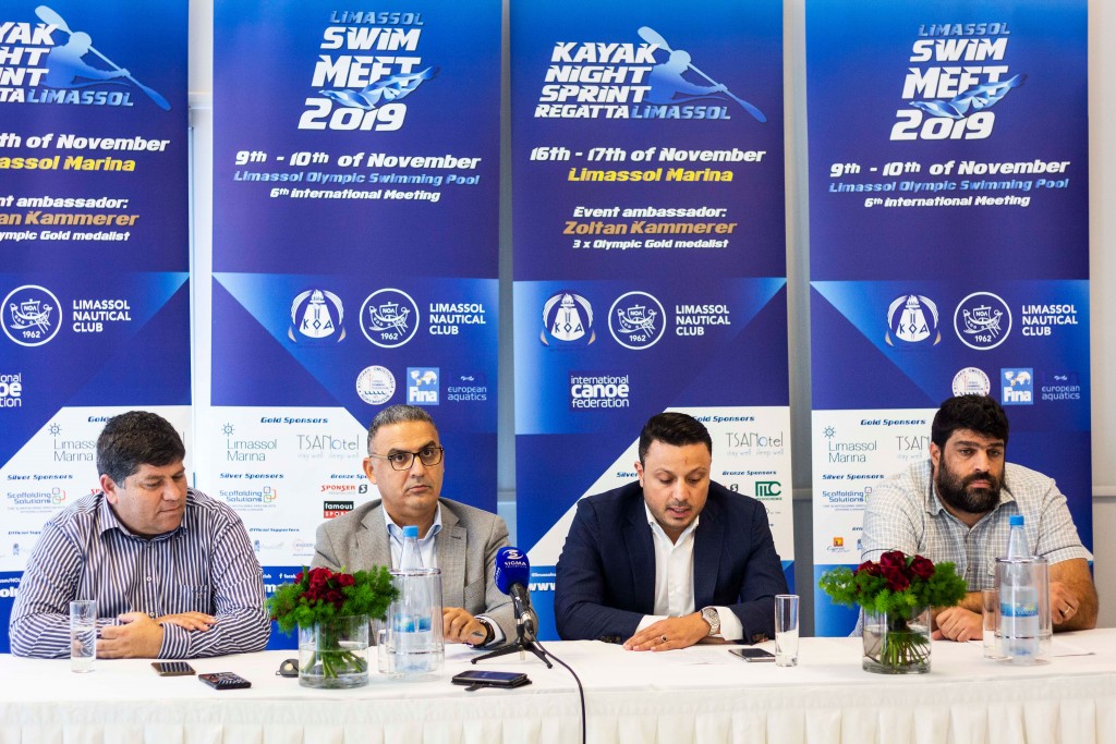 LIMASSOL, CYPRUS, NOVEMBER 8th, 2019 - The Cyprus Sports Organisation (CSO) and the Limassol Nautical Club (LNC) held a successful press conference to present the two international events, Limassol Swim Meet 2019 and Kayak Night Sprint Regatta 2019. The conference took place at TSANOtel in the presence of the Mayor of Germasogeia Mr. Kyriakos Xydias, Mr. Andreas Mylonas, member of the Board of Directors of CSO, Mr. Apostolos Psaras, Vice-Chairman of the Youth and Sports Committee of the Municipality of Limassol and the Chairman of the Board of Directors of LNC, Mr. Nicos Charalambides.